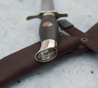 Финка НКВД из кованой нержавеющей стали 95Х18, рукоять - чёрный граб, кожаный чехол идет в комплекте.